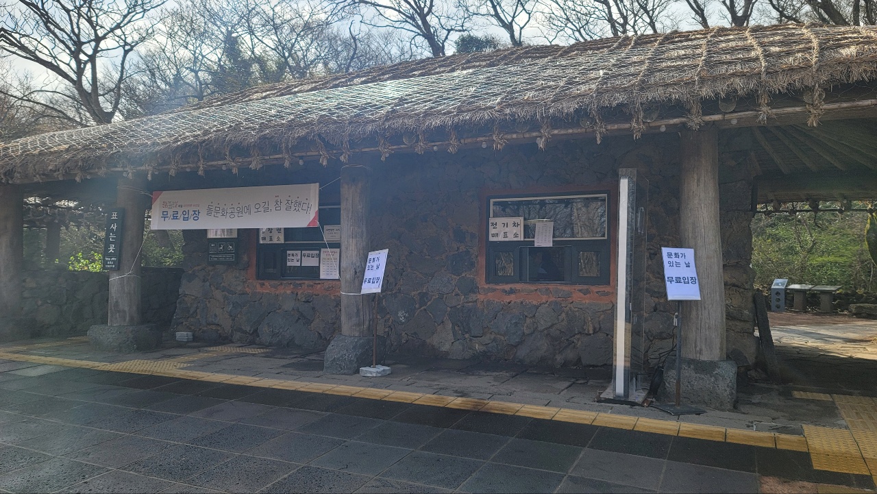 제주 돌문화공원 주차장에 주차하고 매표소로 걸어가는 길에