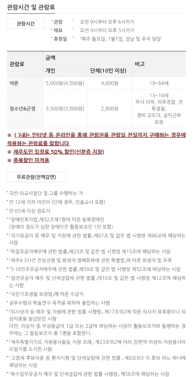 관람시간 및 입장료