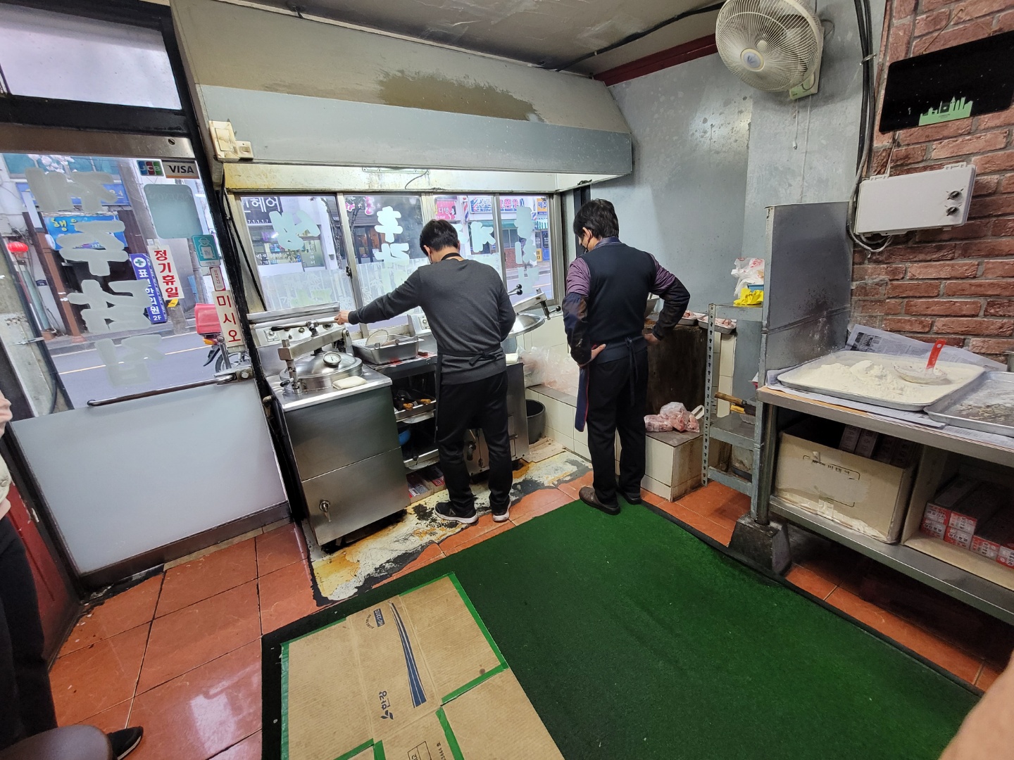 닭을 튀기고 있는 사장님