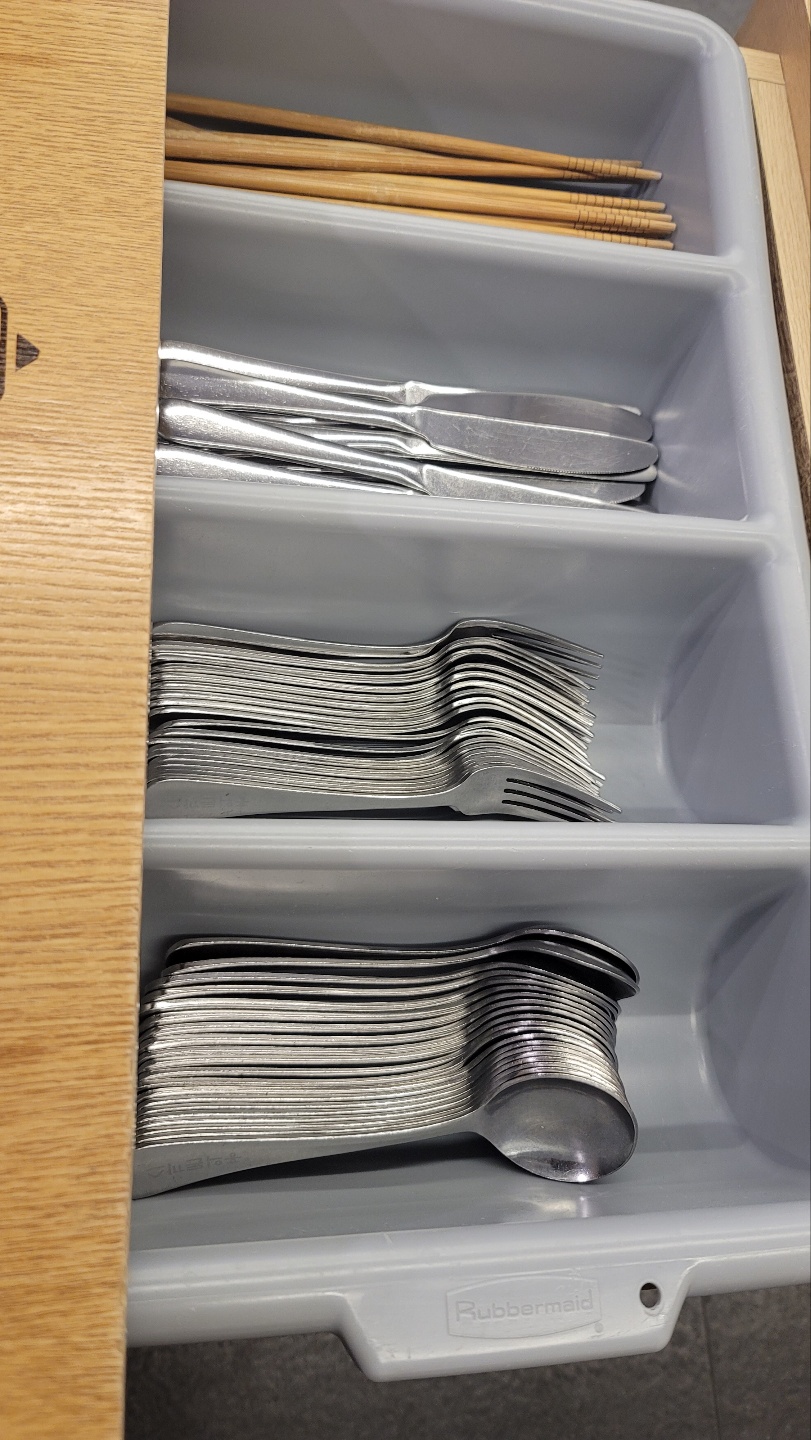 상 옆에 서랍을 열면 깔끔하게 정리되어 있네요