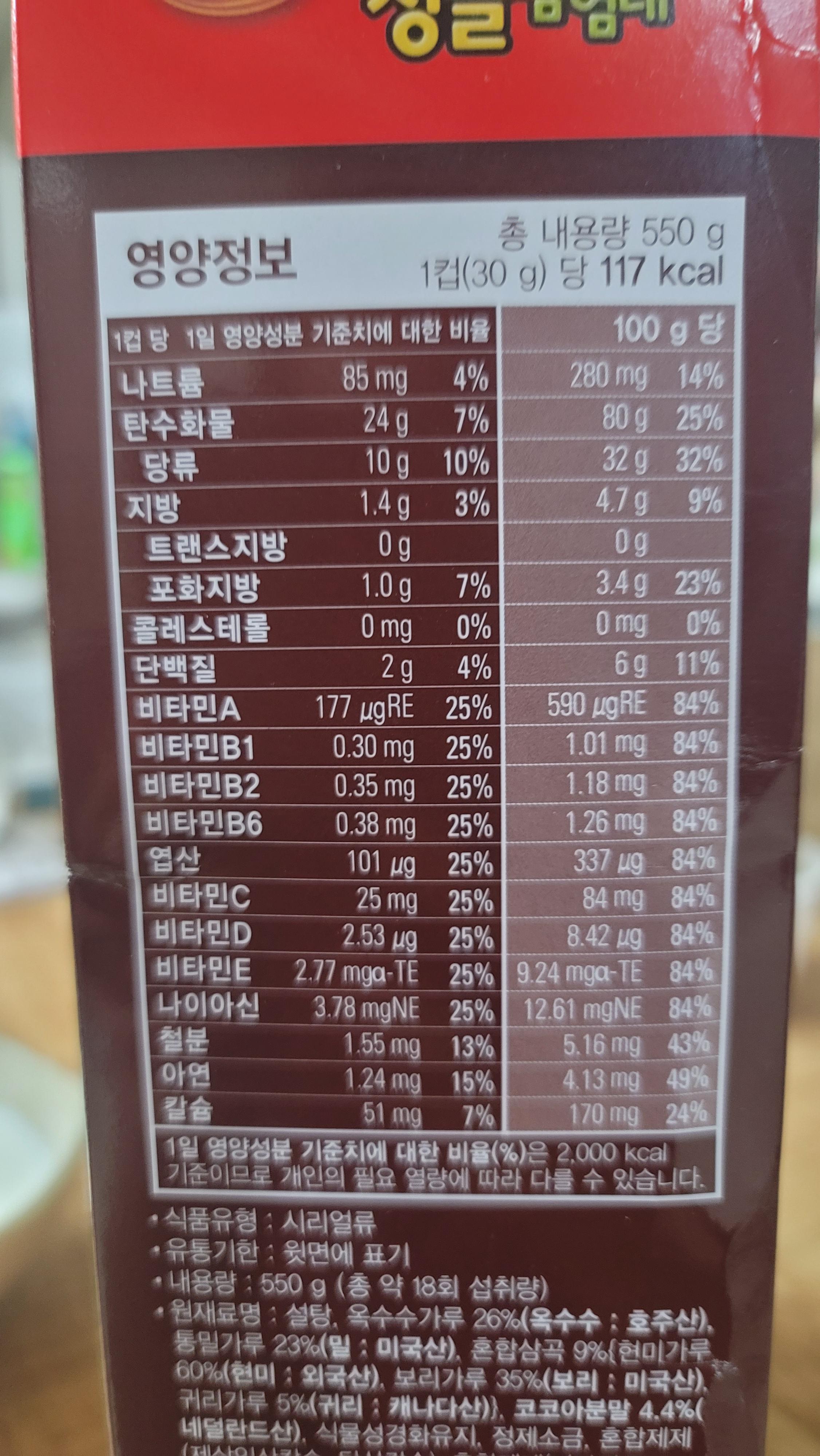 기존 제품보다 코코아를 더 넣어 더욱 부드럽고 풍부해진 맛에 오곡을 사용하여