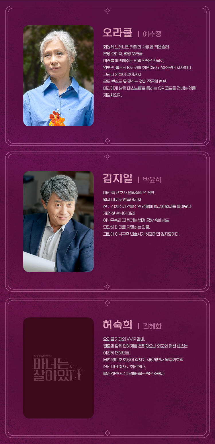 TV조선 토요드라마 '마녀는 살아있다' 에서
