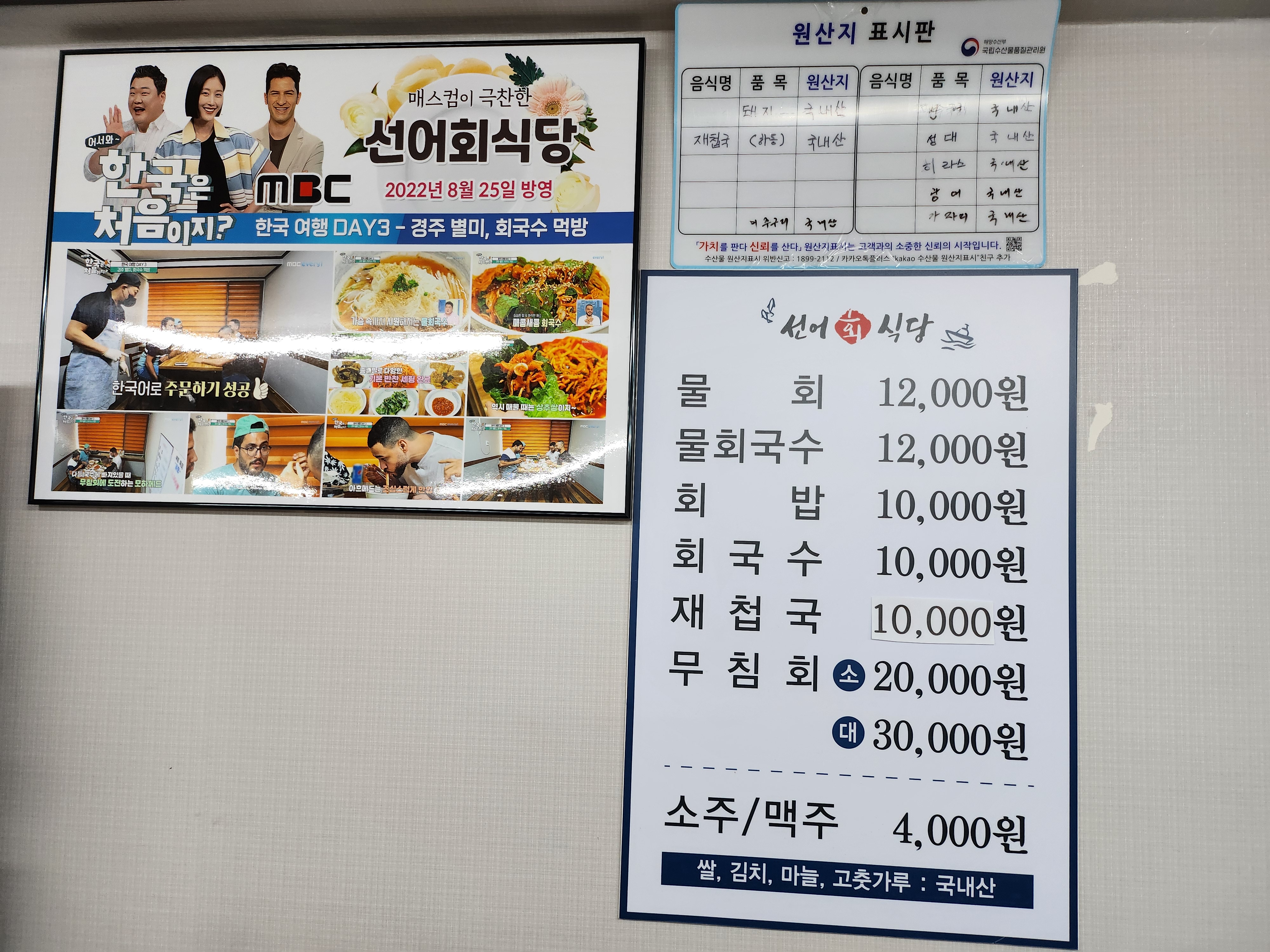 경주 선어회 식당 입니다