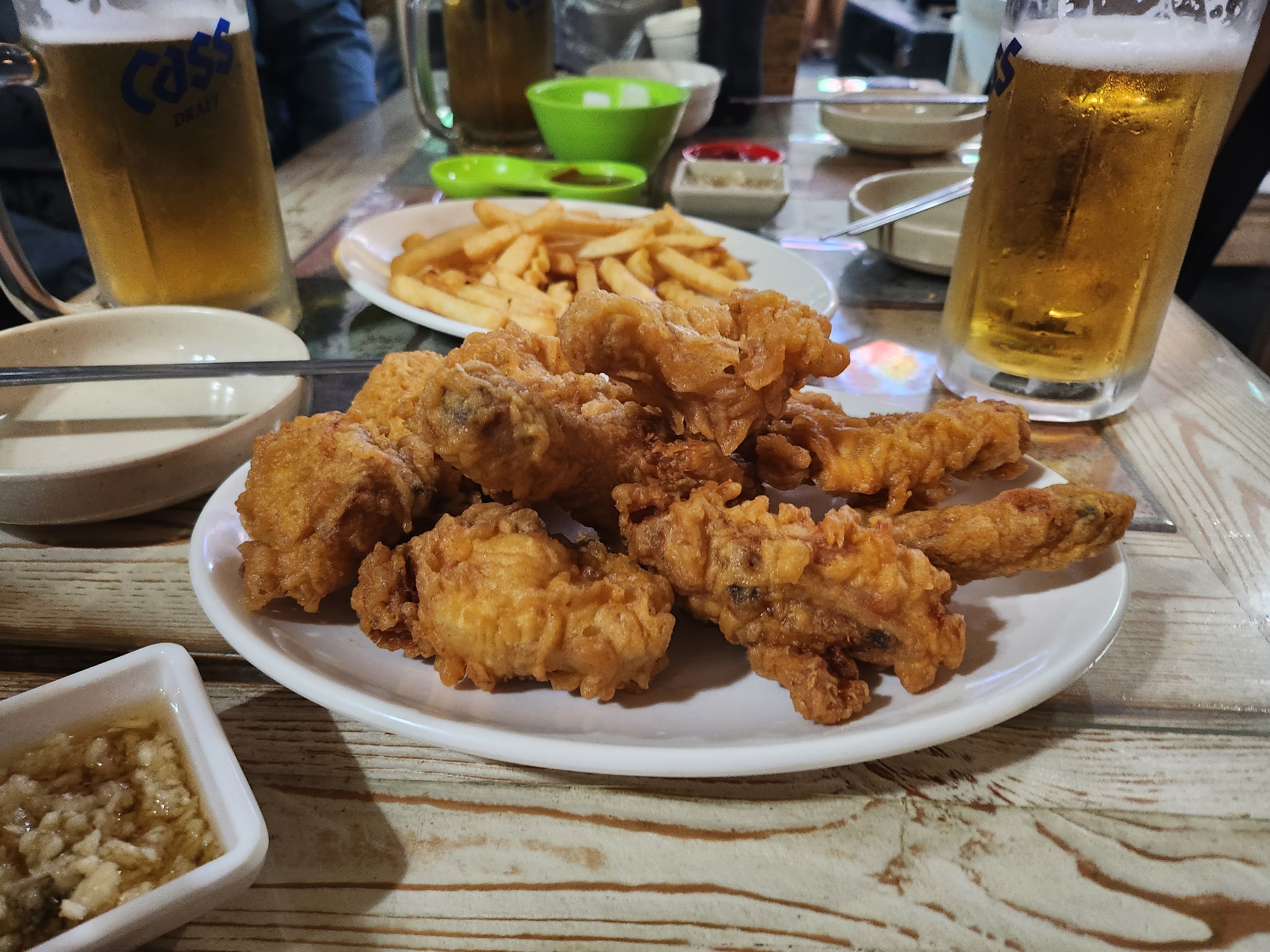 시원한 맥주랑 맛있는 치킨이랑 간단히 저녁에 먹기 좋은 곳