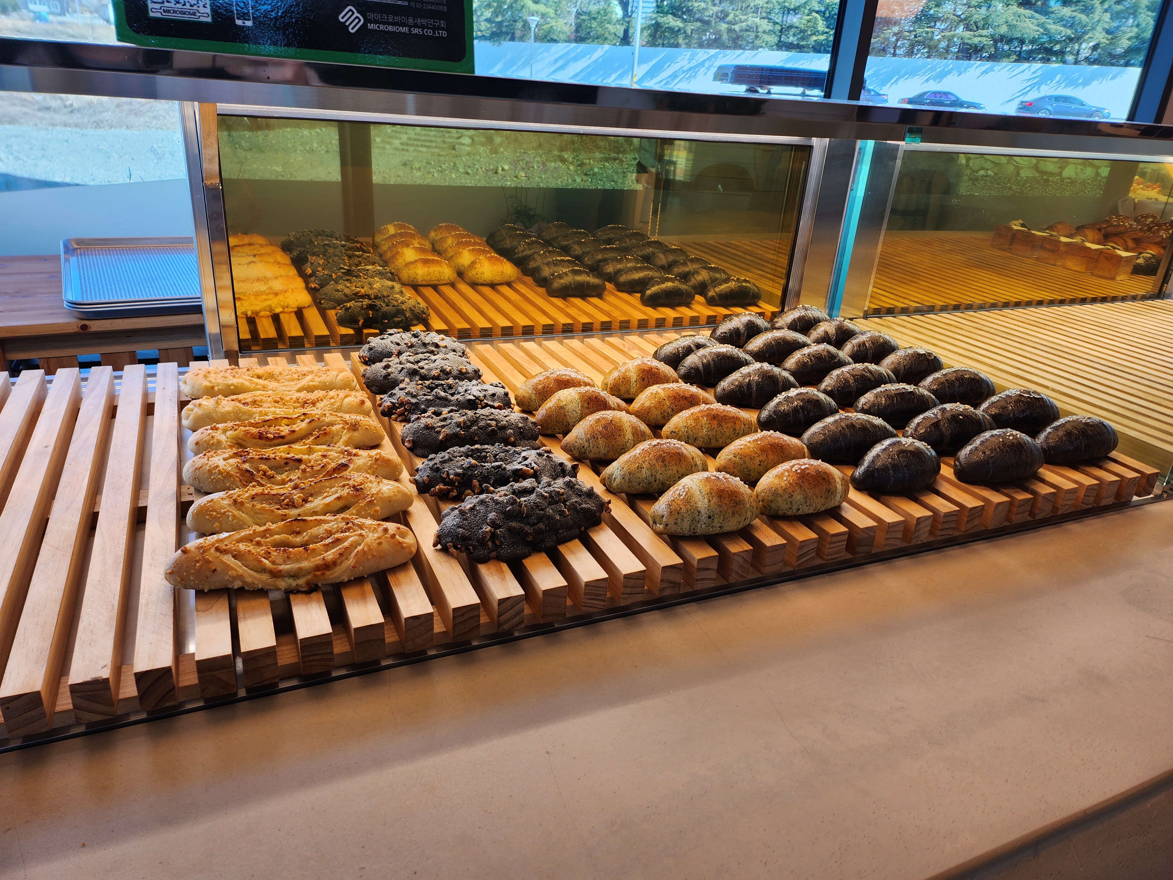 다양한 종류의 맛있는 빵이 진열되어 있었어요