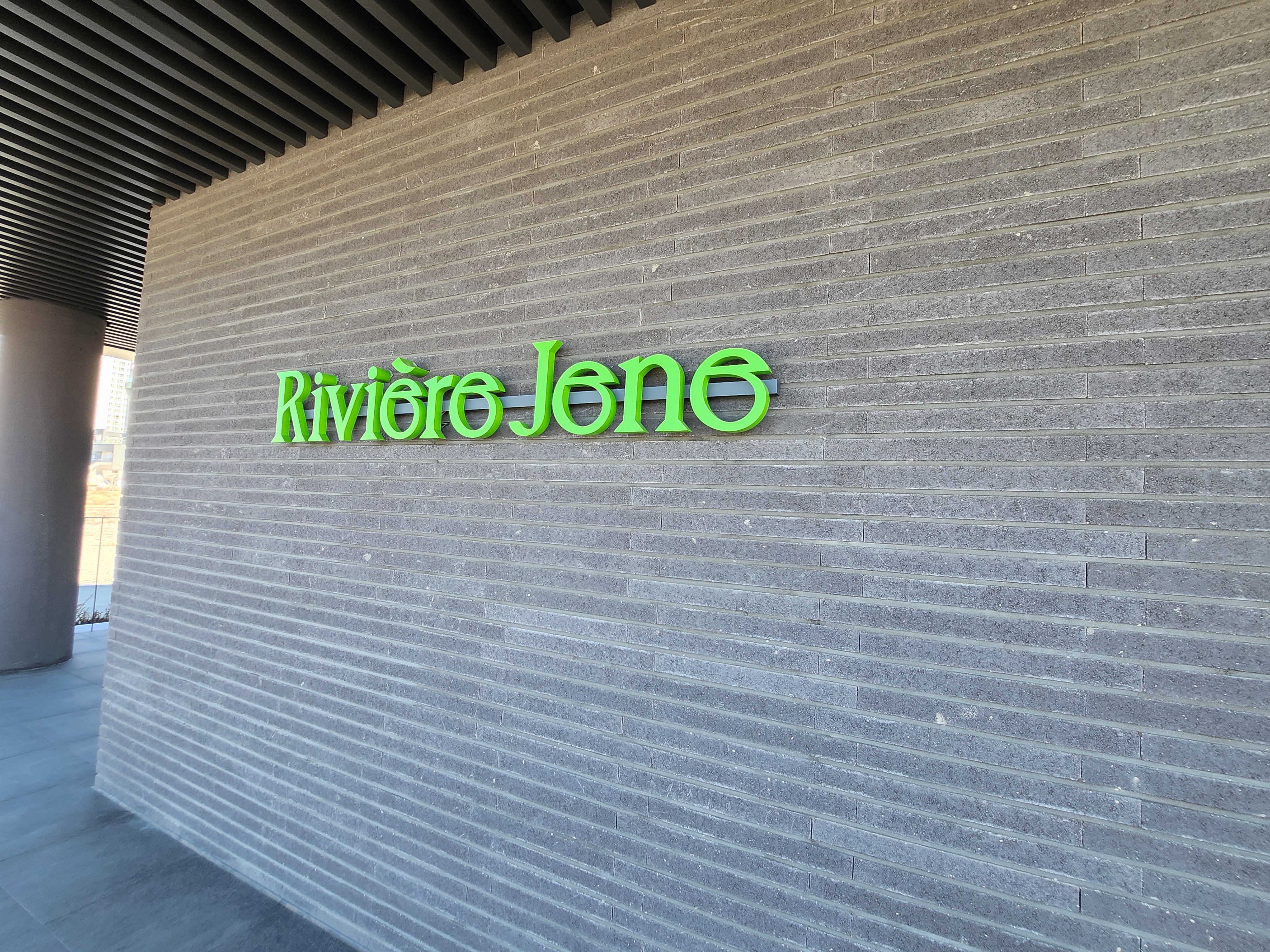 리비에르 제내 들어가기 전 회색 바탕에 연두빛 으로