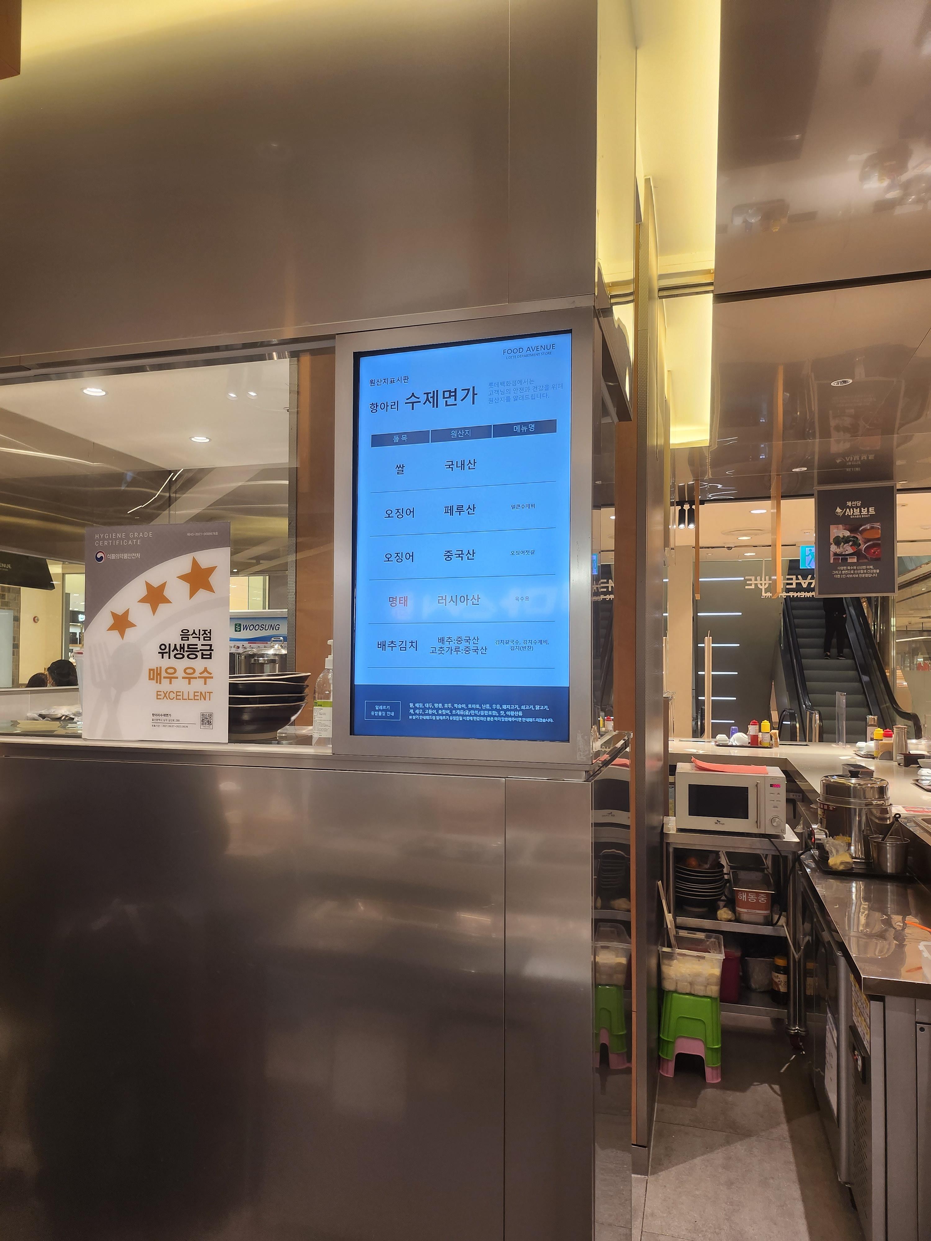 음식점 위생등급도 매우 우수인 항아리 수제면가 입니다