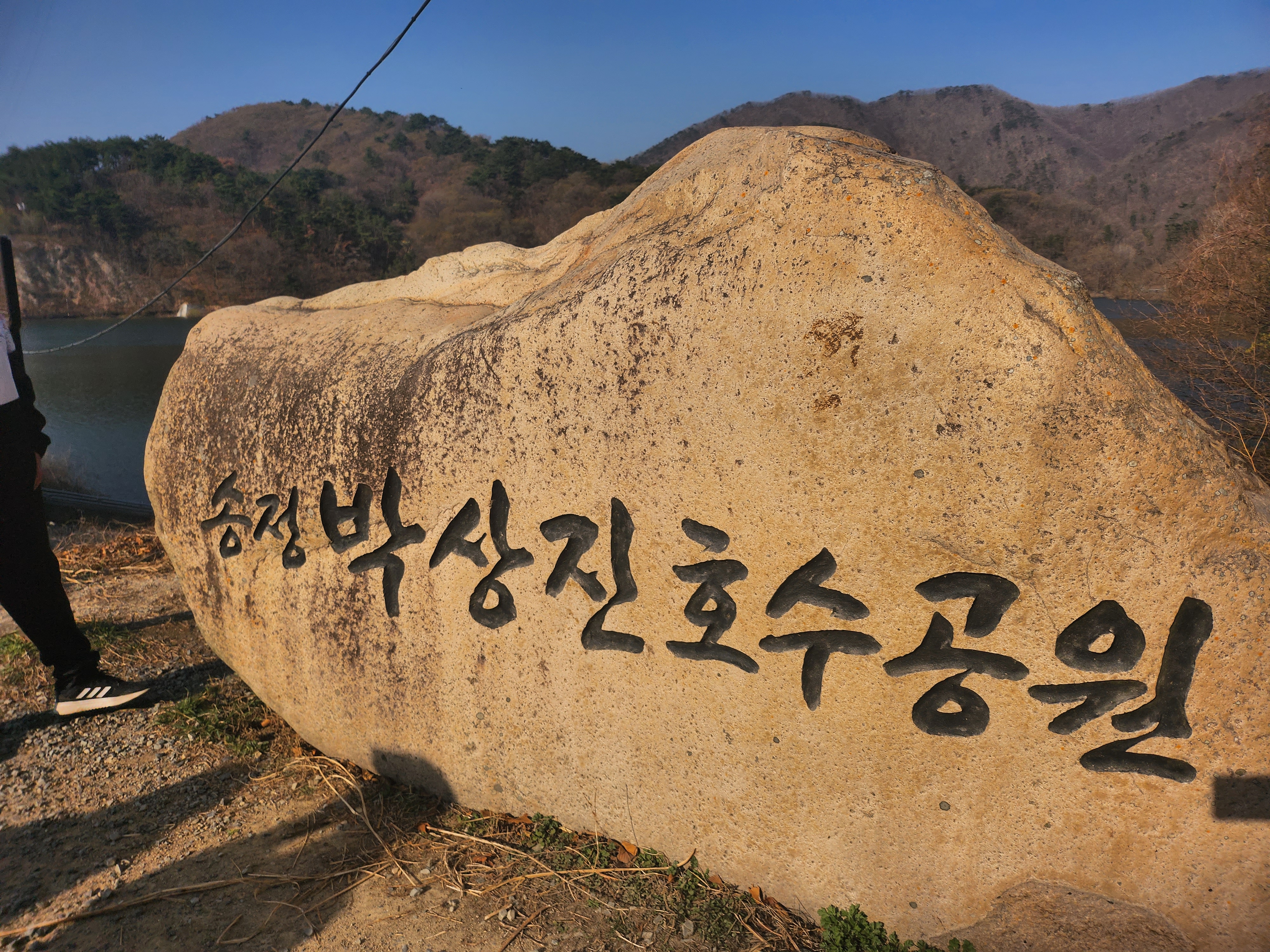 주차하고 올라가면 이렇게 박상진 호수공원이 새겨진 돌이 보입니다
