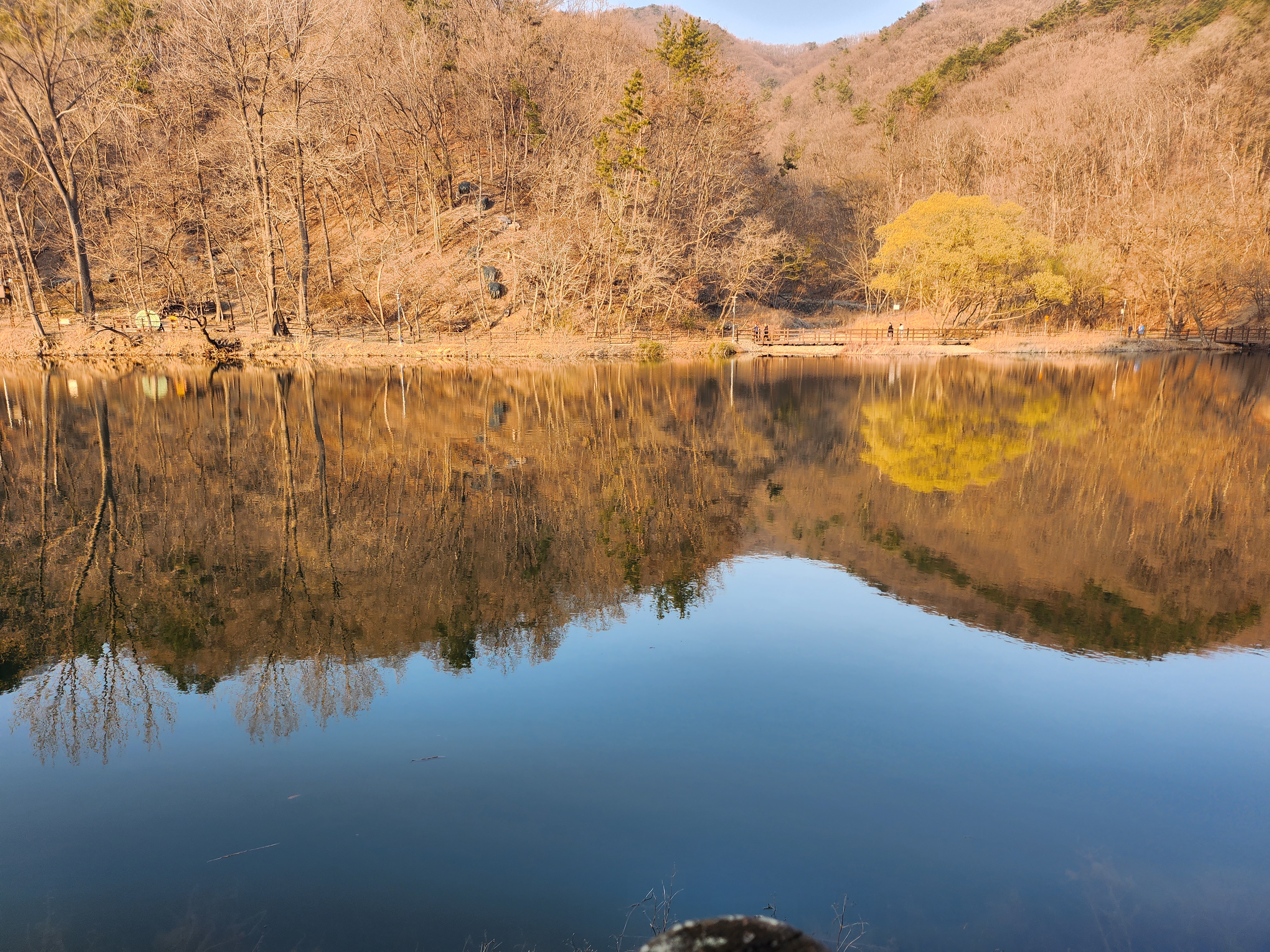 해가 비치는 호수가 아름다운 울산 걷기 좋은 길 입니다