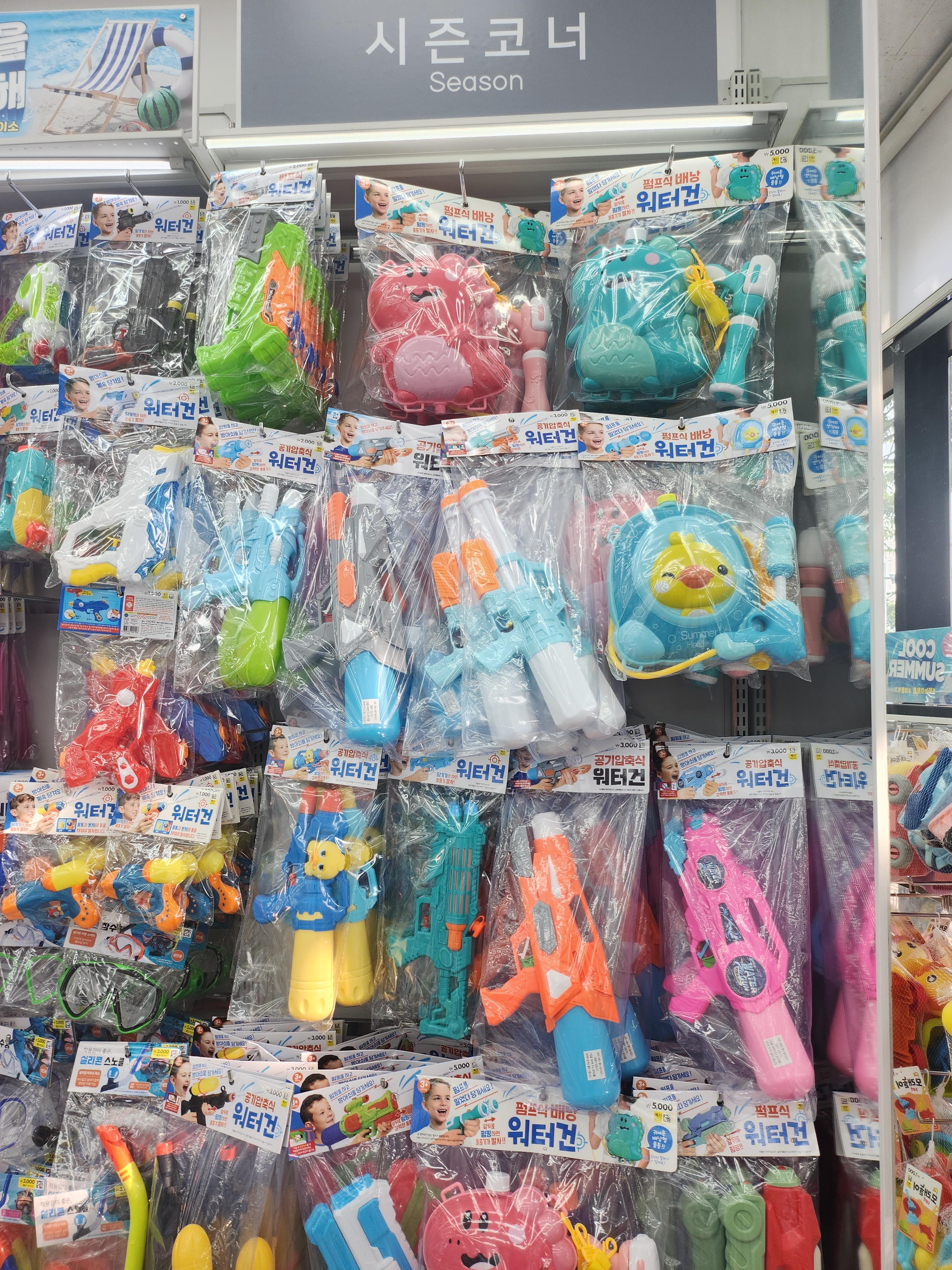 한쪽벽면을 가득 채운 물총 입니다