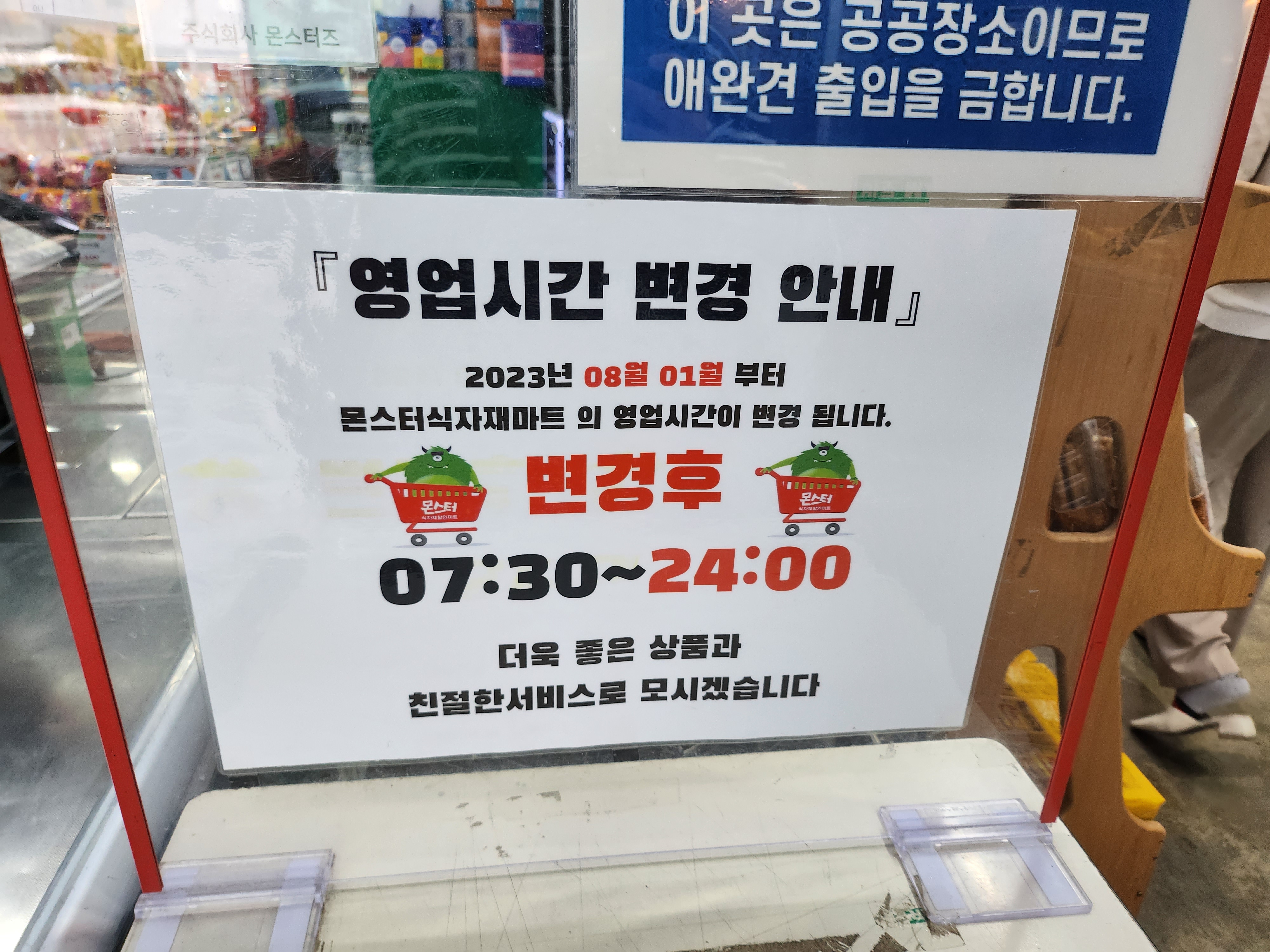 23년8월1일 부터 몬스터 식자재 마트 영업시간은