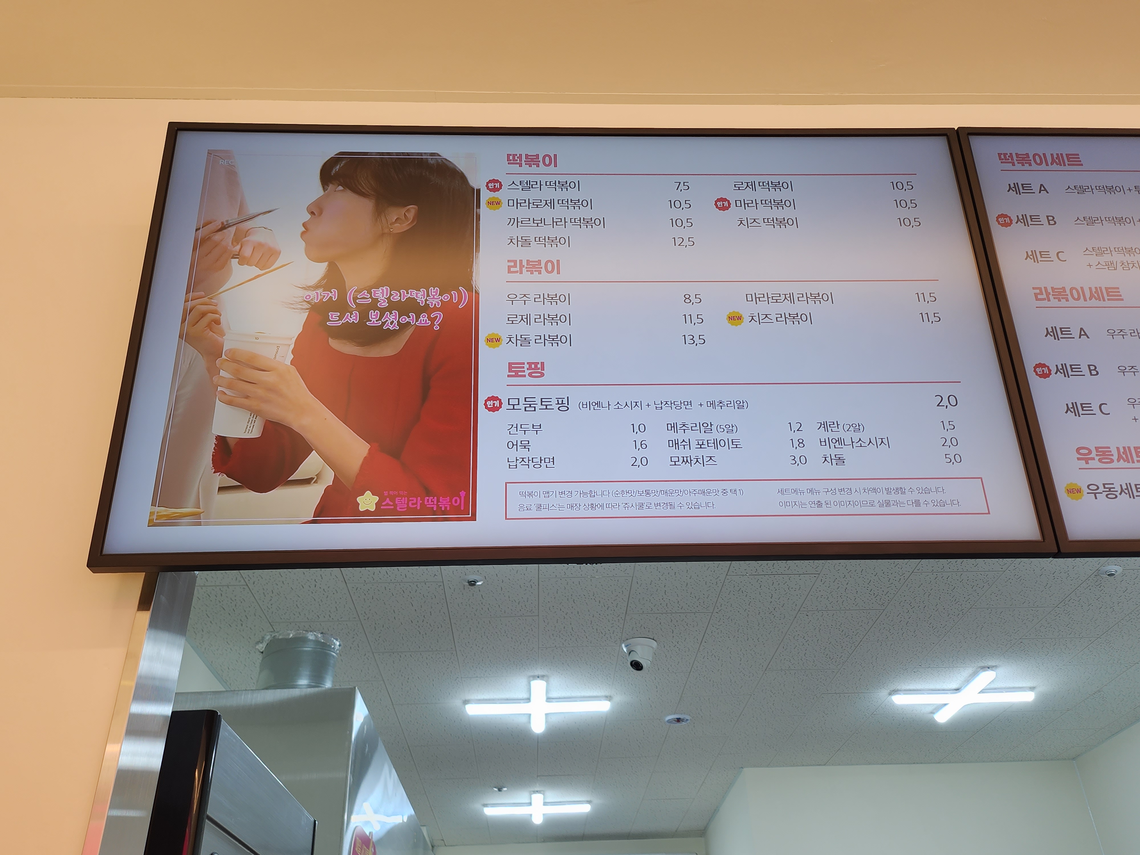 스텔라 떡볶이 메뉴 입니다