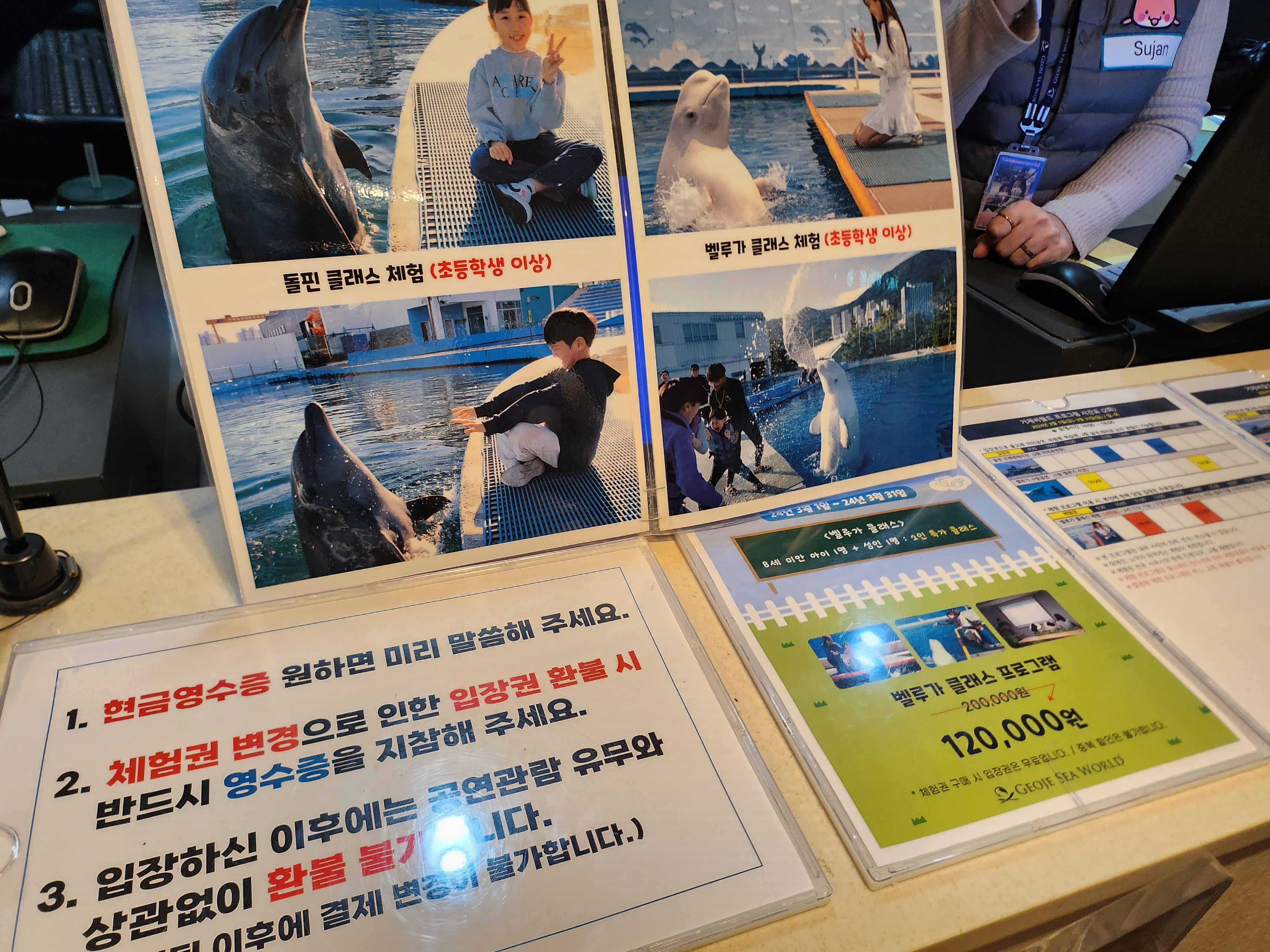 돌핀클래스 체험과 벨루가 클래스 체험 해볼 수 있는데