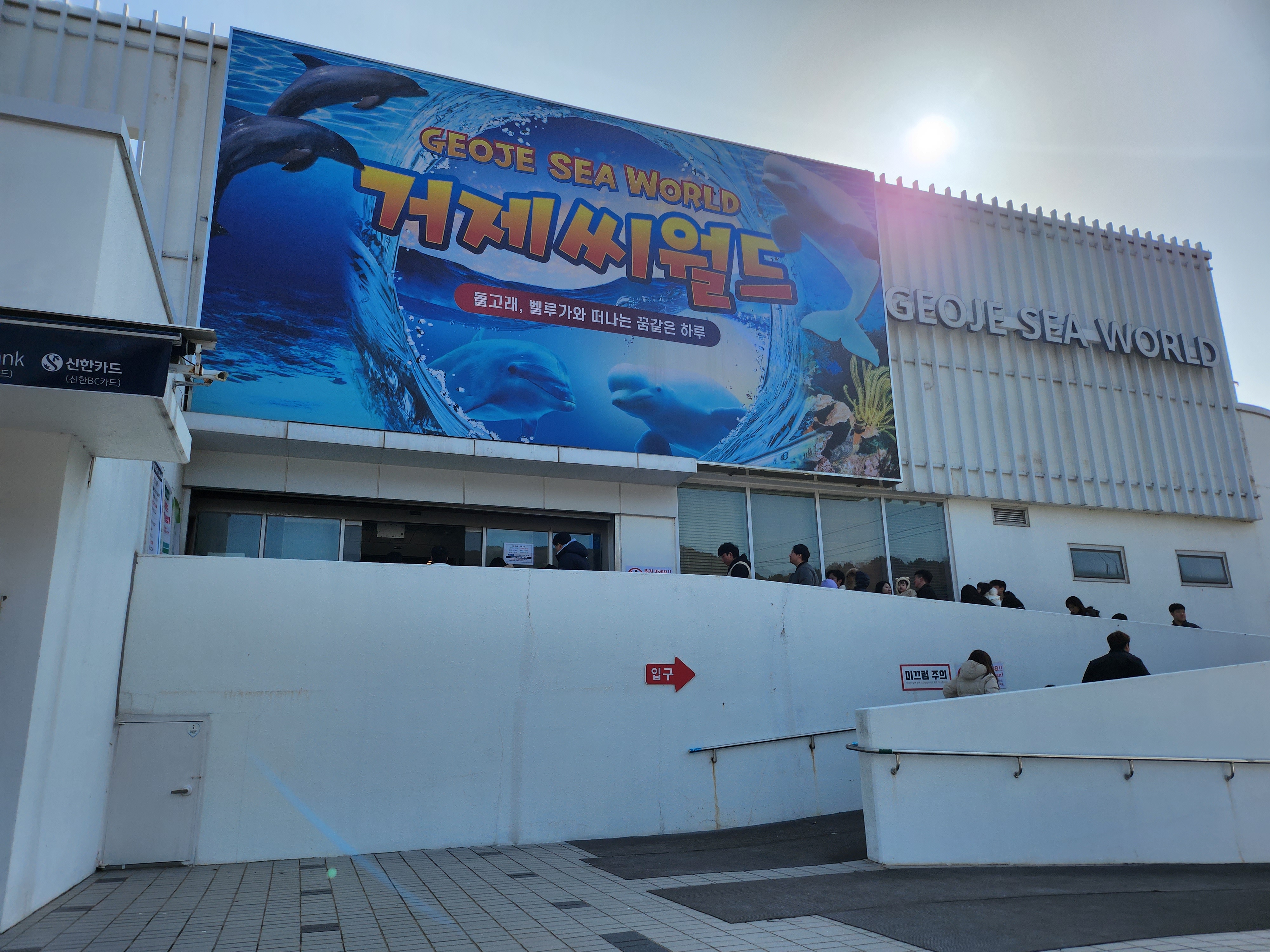 거제씨월드 입구에도 사람들이 줄지어 있었어요
