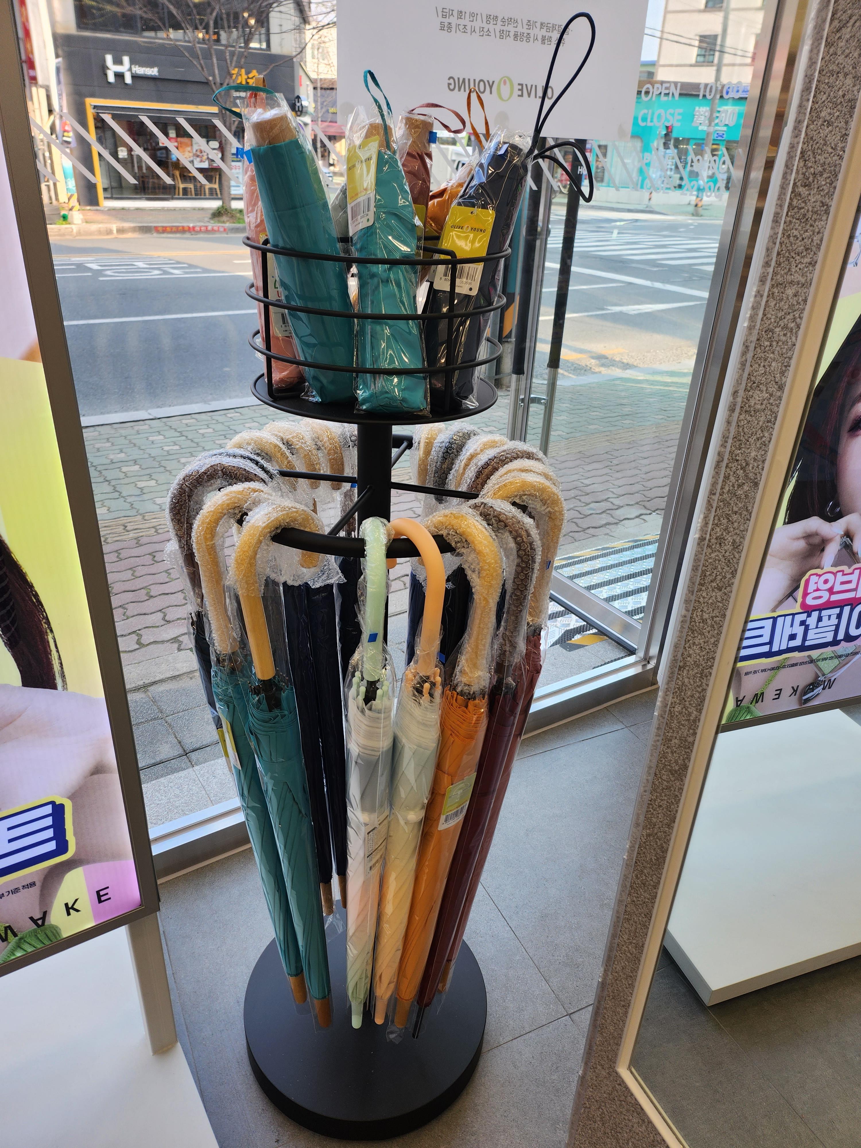 올리브영 입구에 우산이 보이더라구요