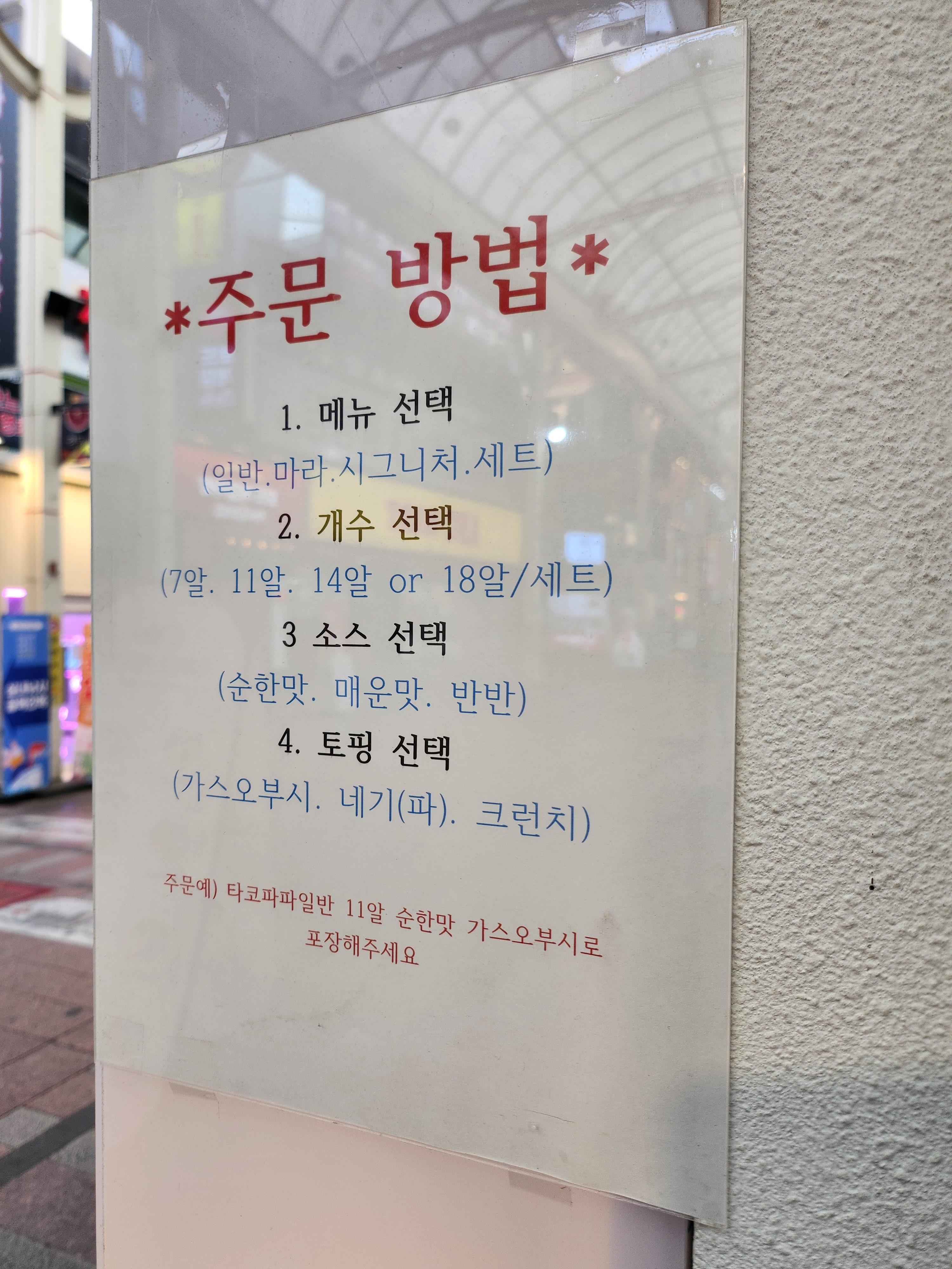 주문방법이 상세히 적혀 있어서 타코야끼 한번도 안 먹어본 사람도 쉽게 주문 가능해요