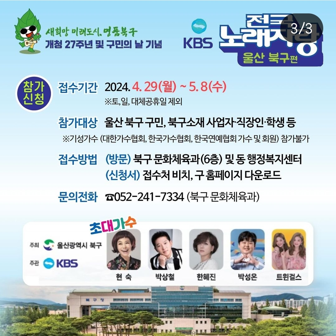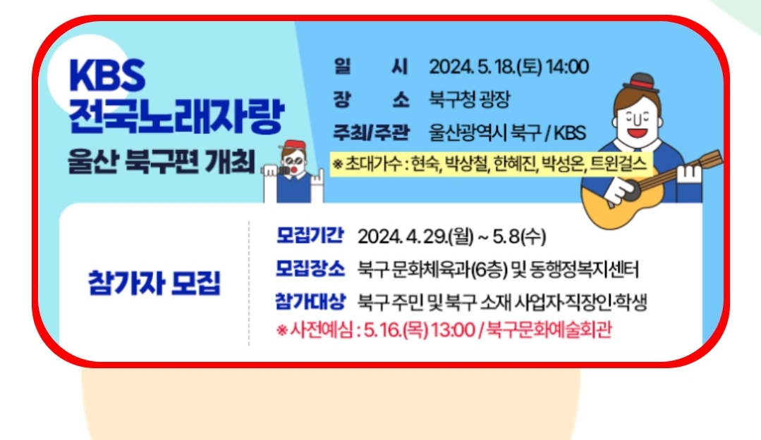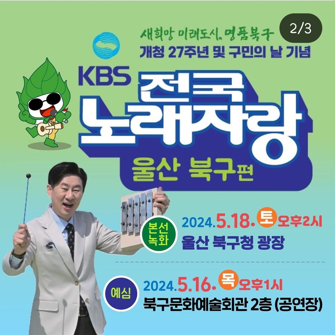 제가 사는 곳이랑 가까운 울산 북구에서 전국노래자랑이 개최된다고 하니
