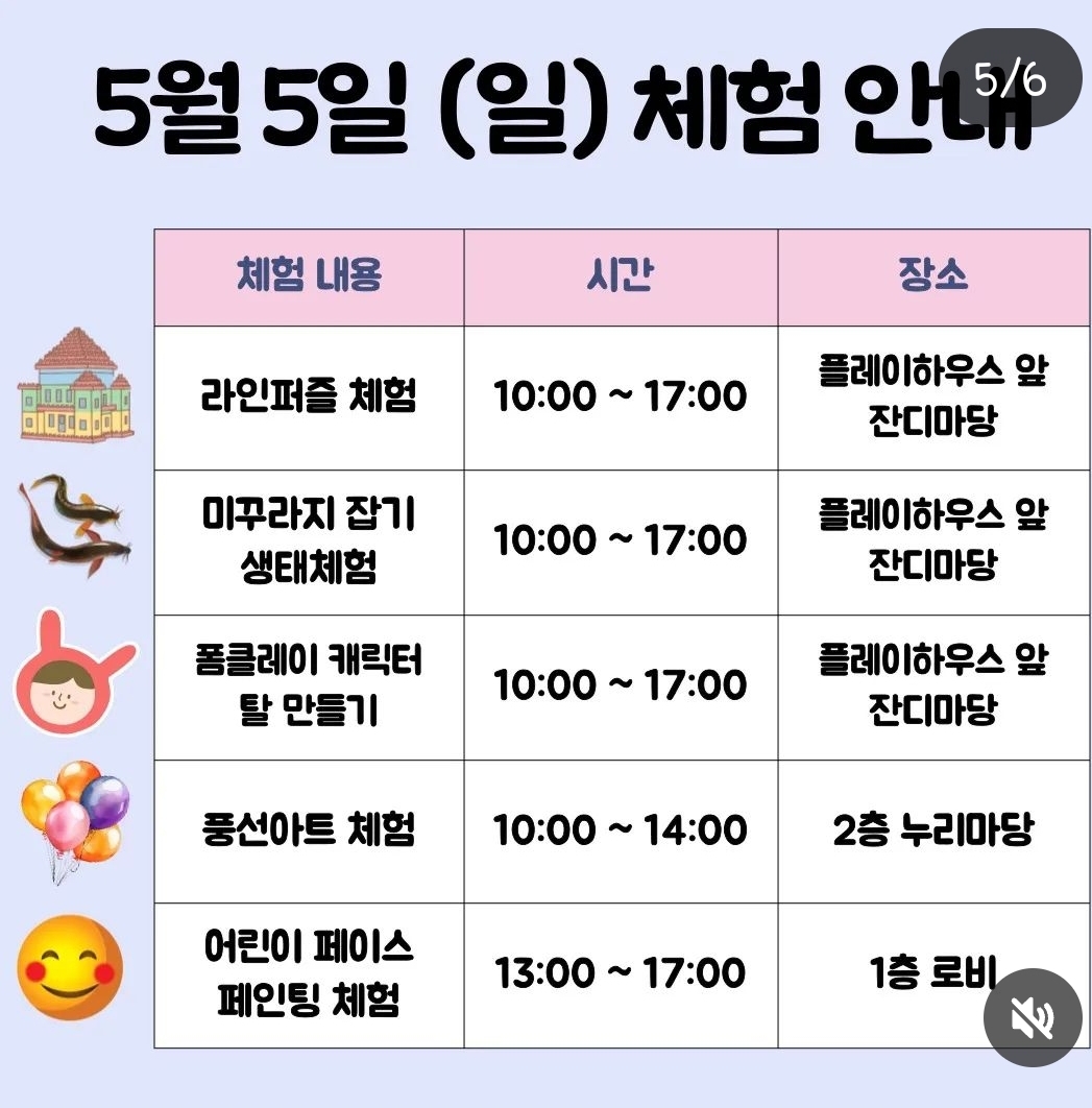 즐거운 어린이날 체험, 행사 참여하시길 알려드립니다