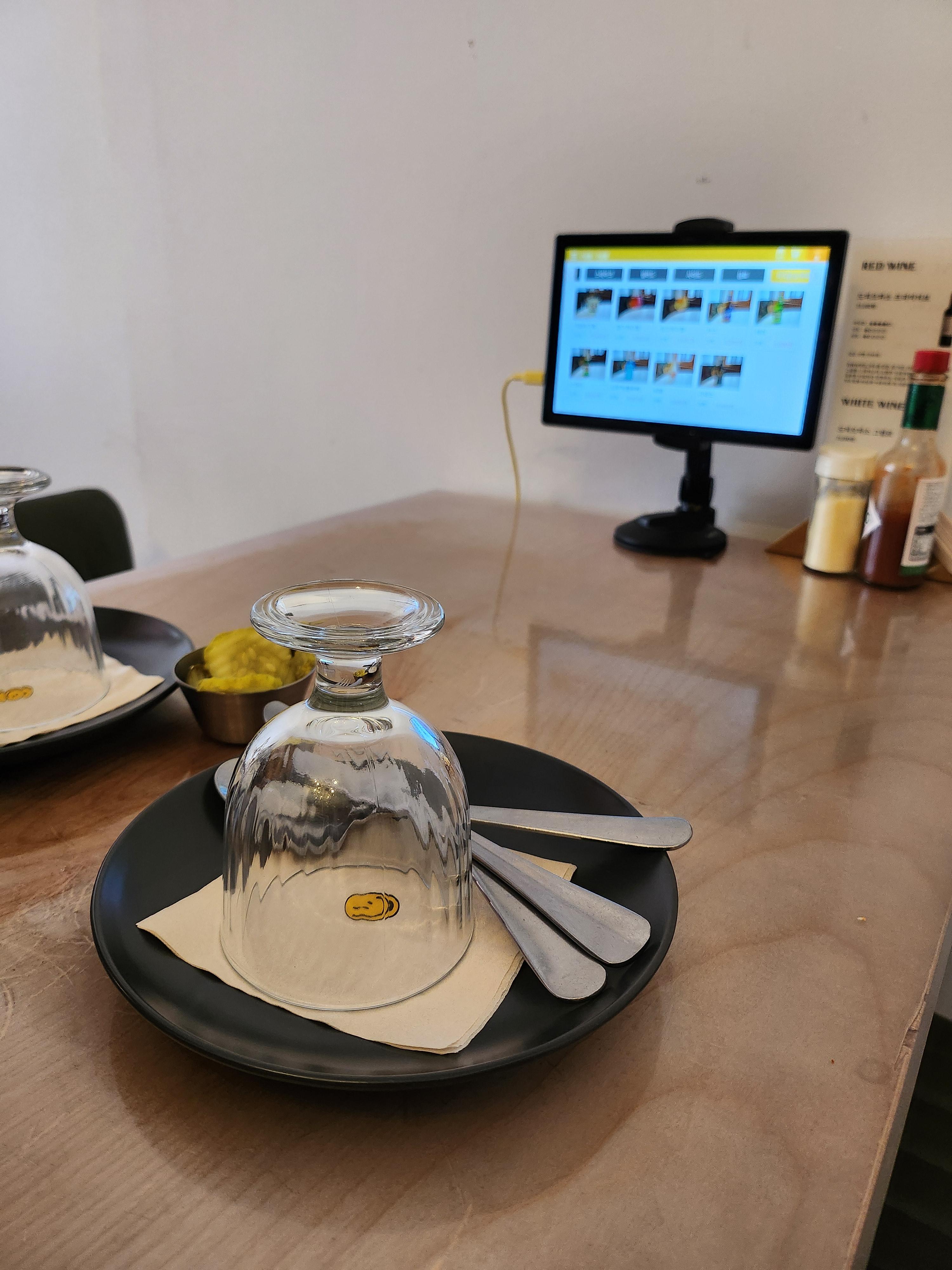 물컵과 앞접시 스푼 포크 나이프는 미리 세팅되어 있었어요