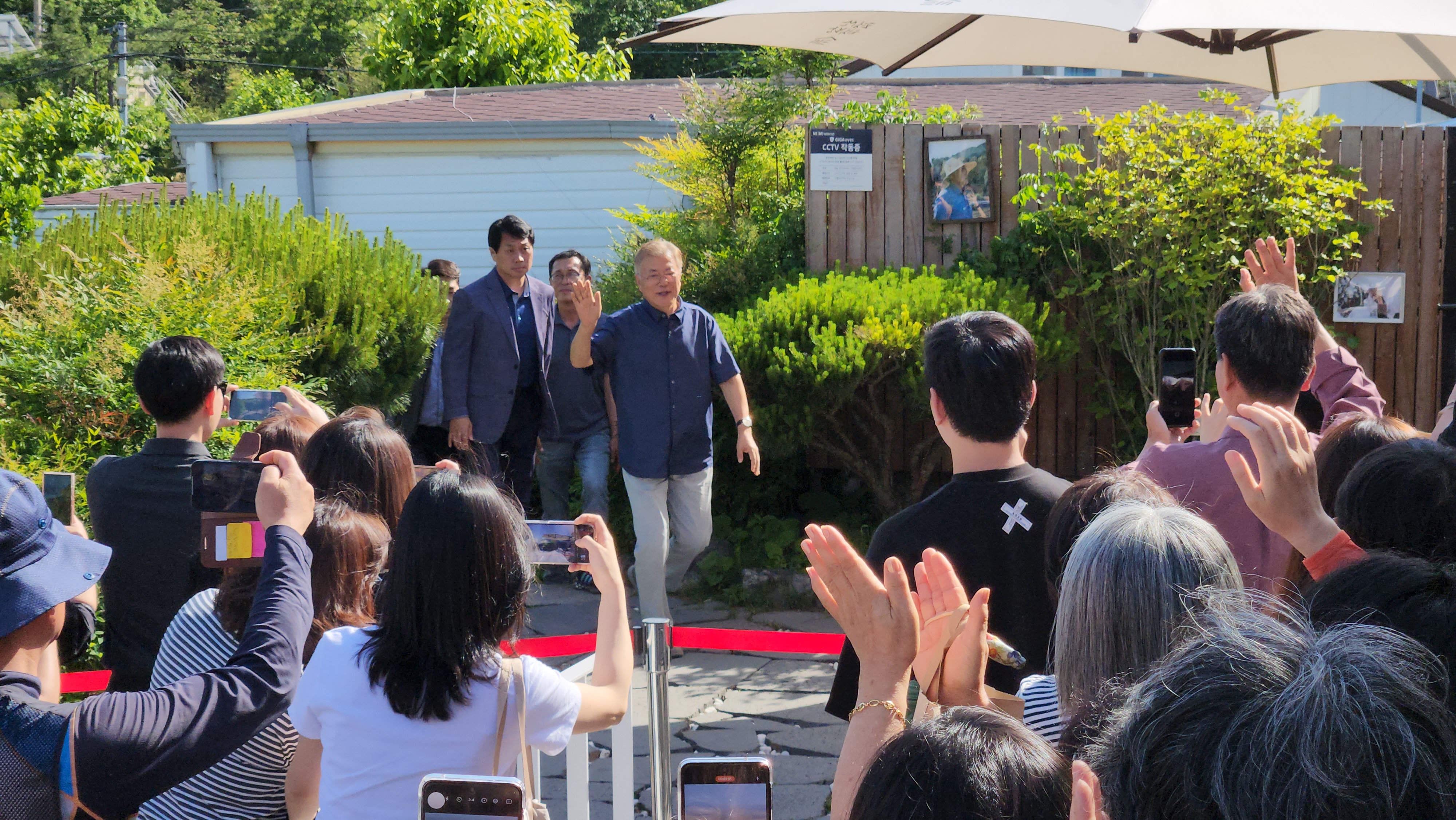 문재인 전 대통령님이 나오는 시간 20분전쯤 사진 찍기 위한 줄을 섰어요