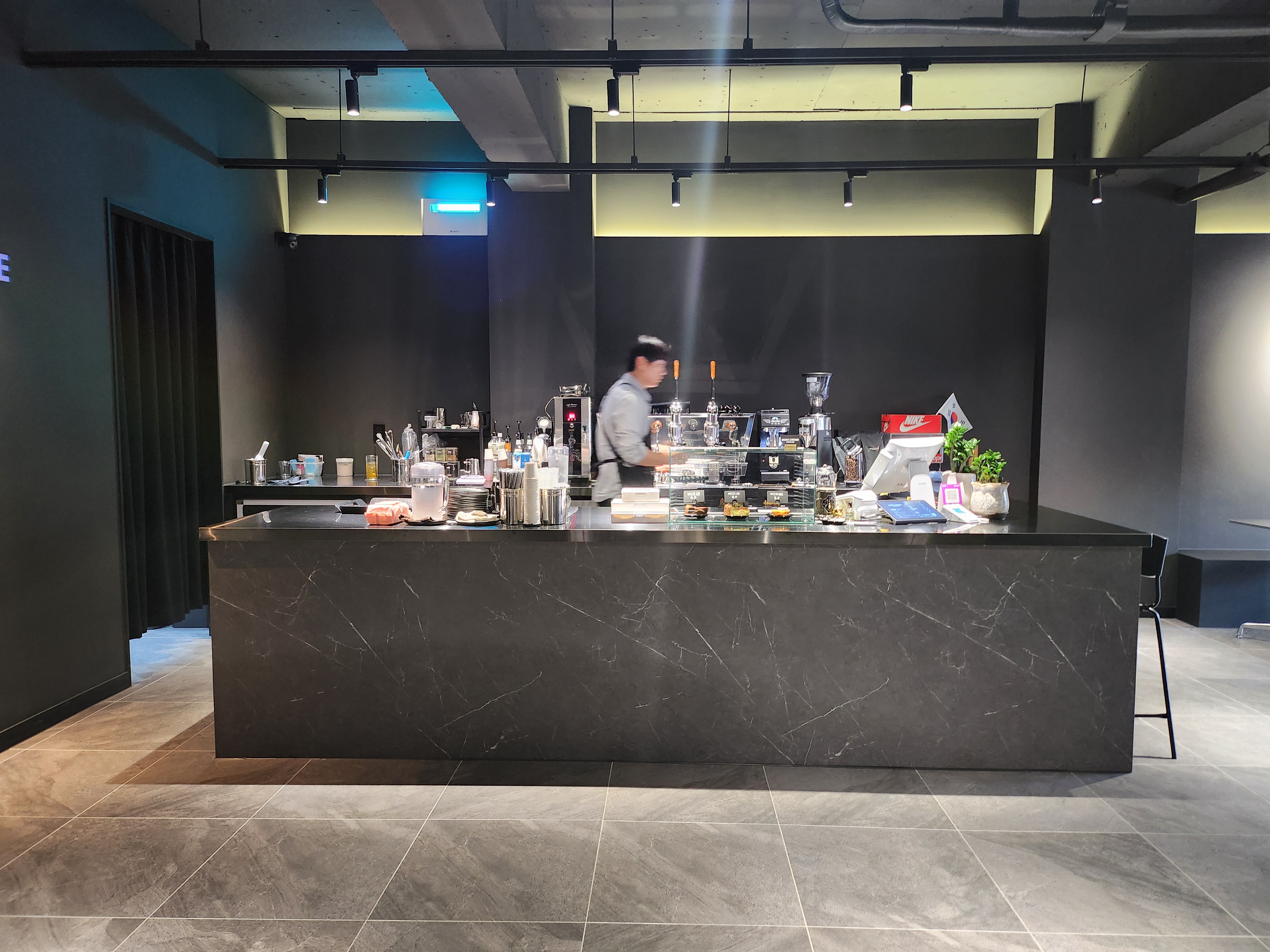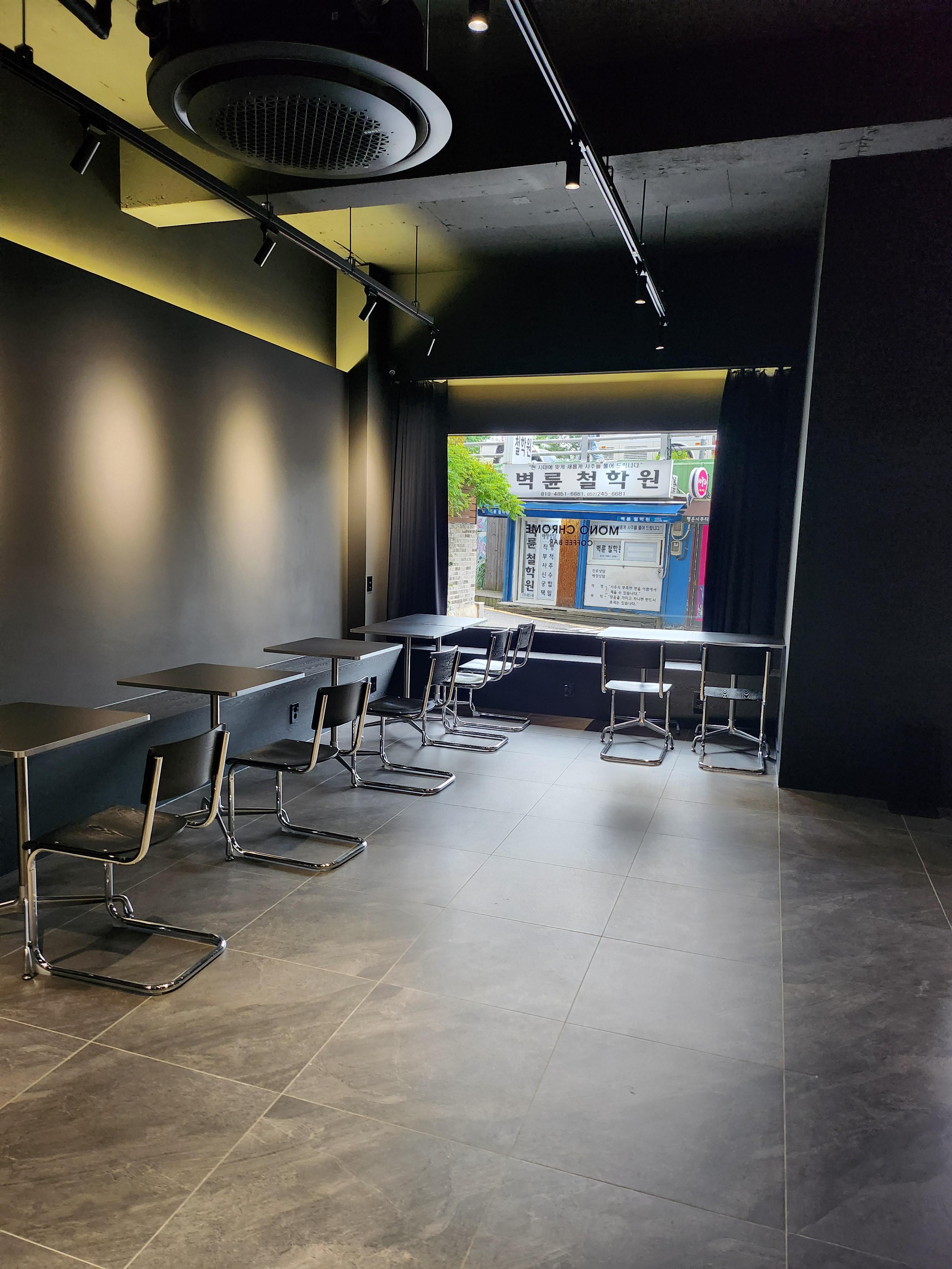 어두운 블랙이 너무 잘 어울리던 잔잔하고 분위기 있는 카페 모노크롬바 내부모습 입니다