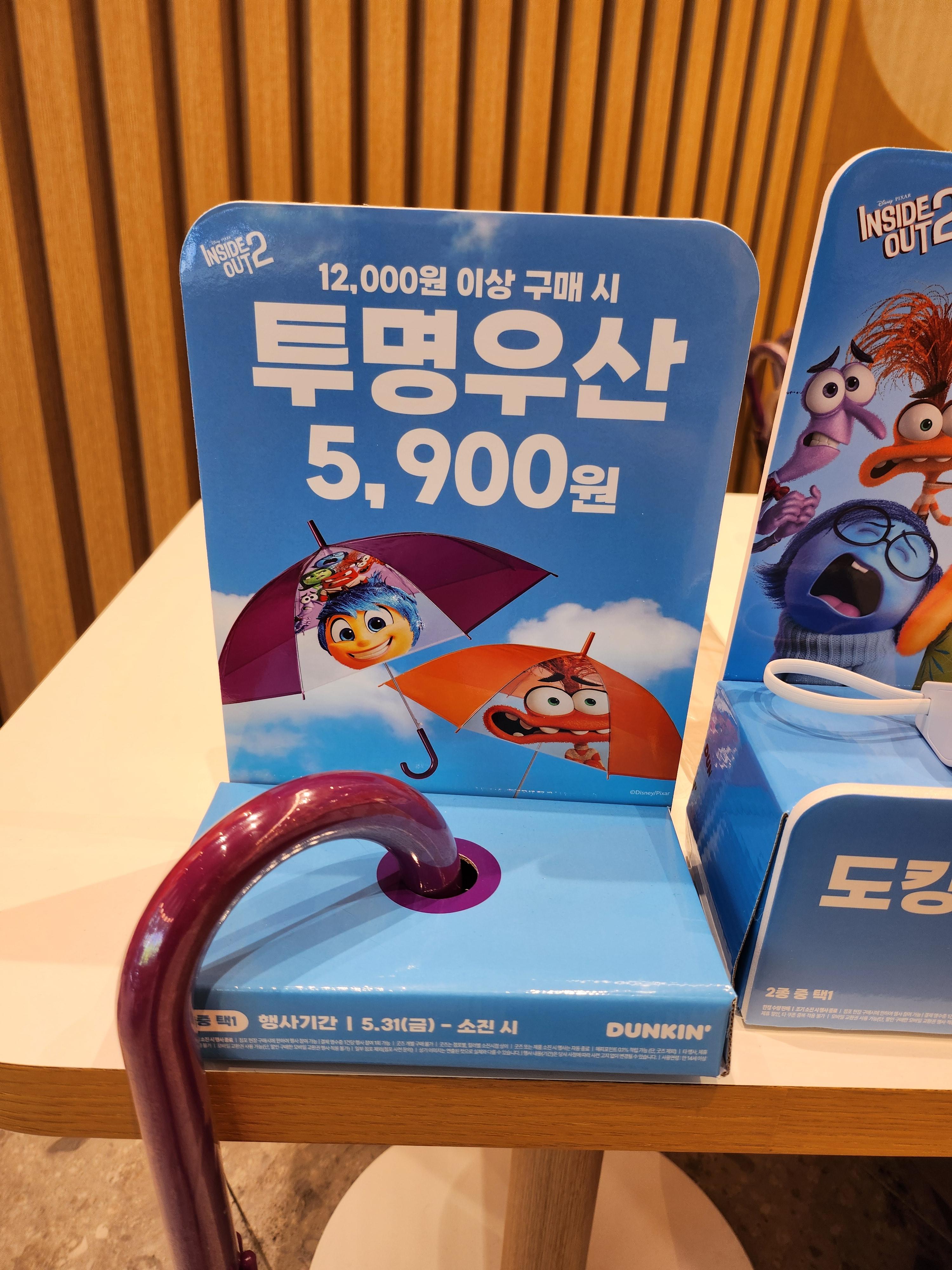 던킨도넛 투명우산은 12,000원 이상 구매시 5,900원에 판매하고 있었어요