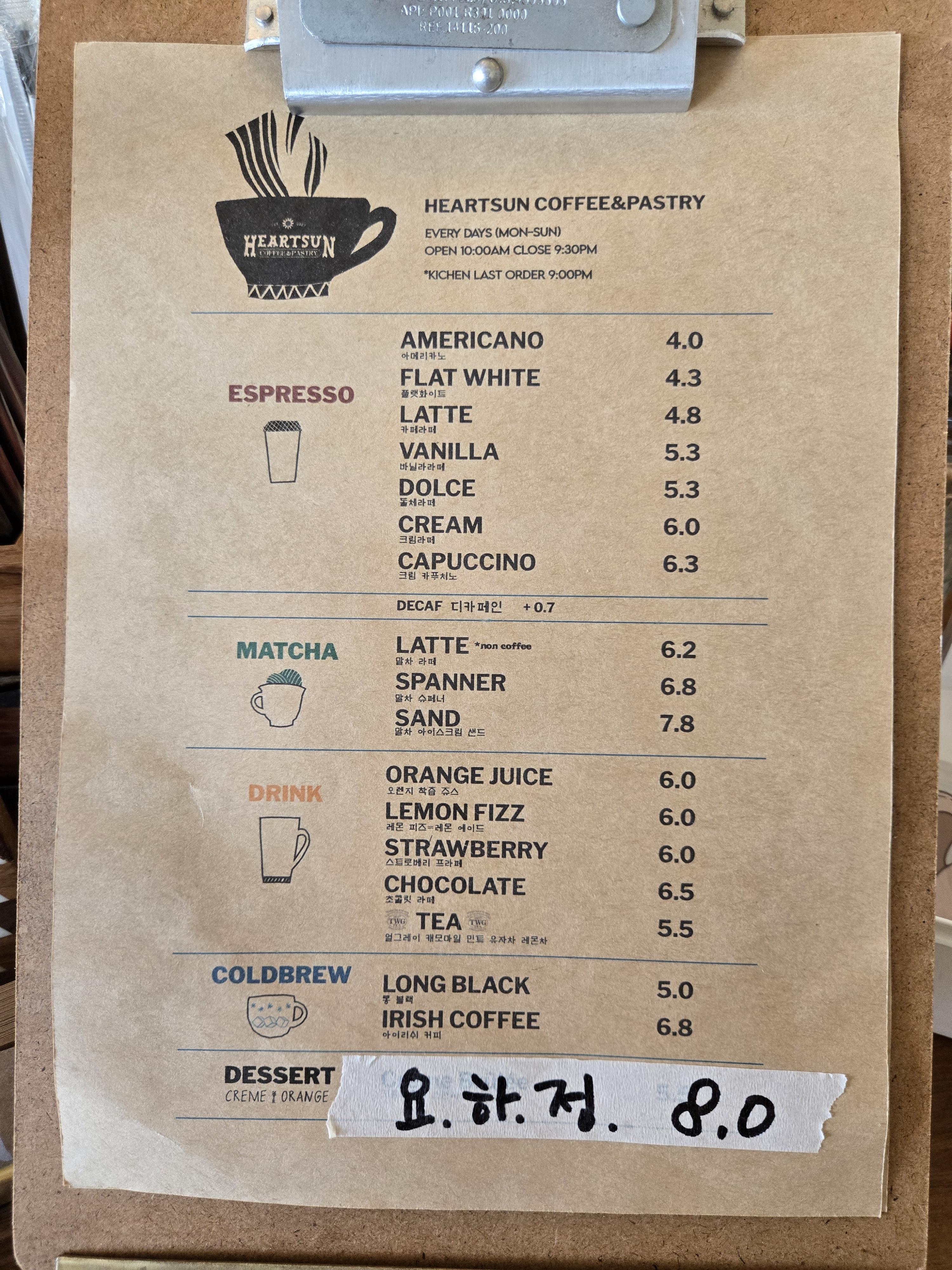 울산 송정 카페 하트썬 메뉴 입니다