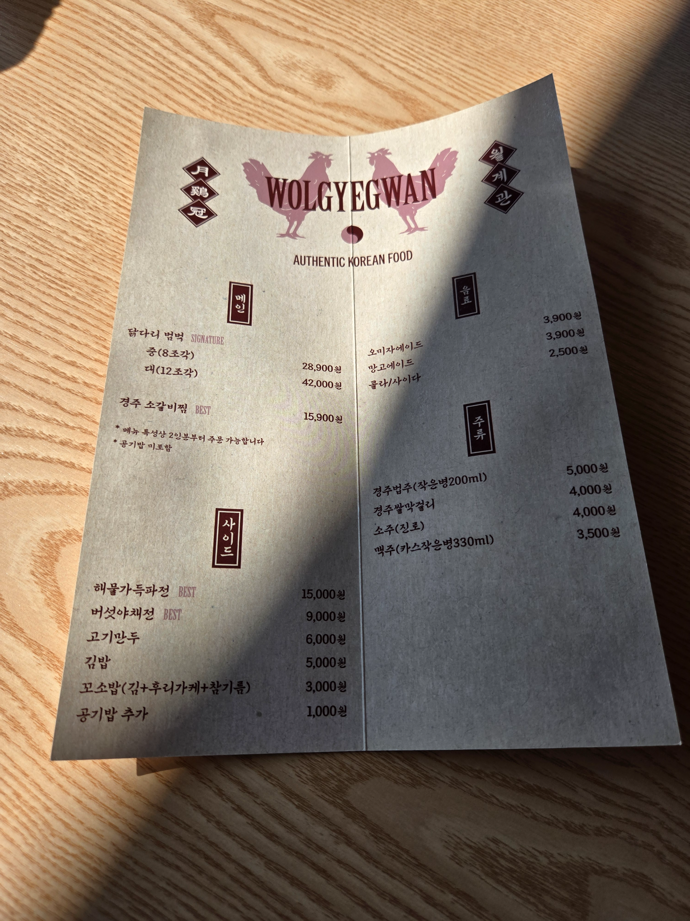 경주 황리단길 맛집 월계관 메뉴 입니다