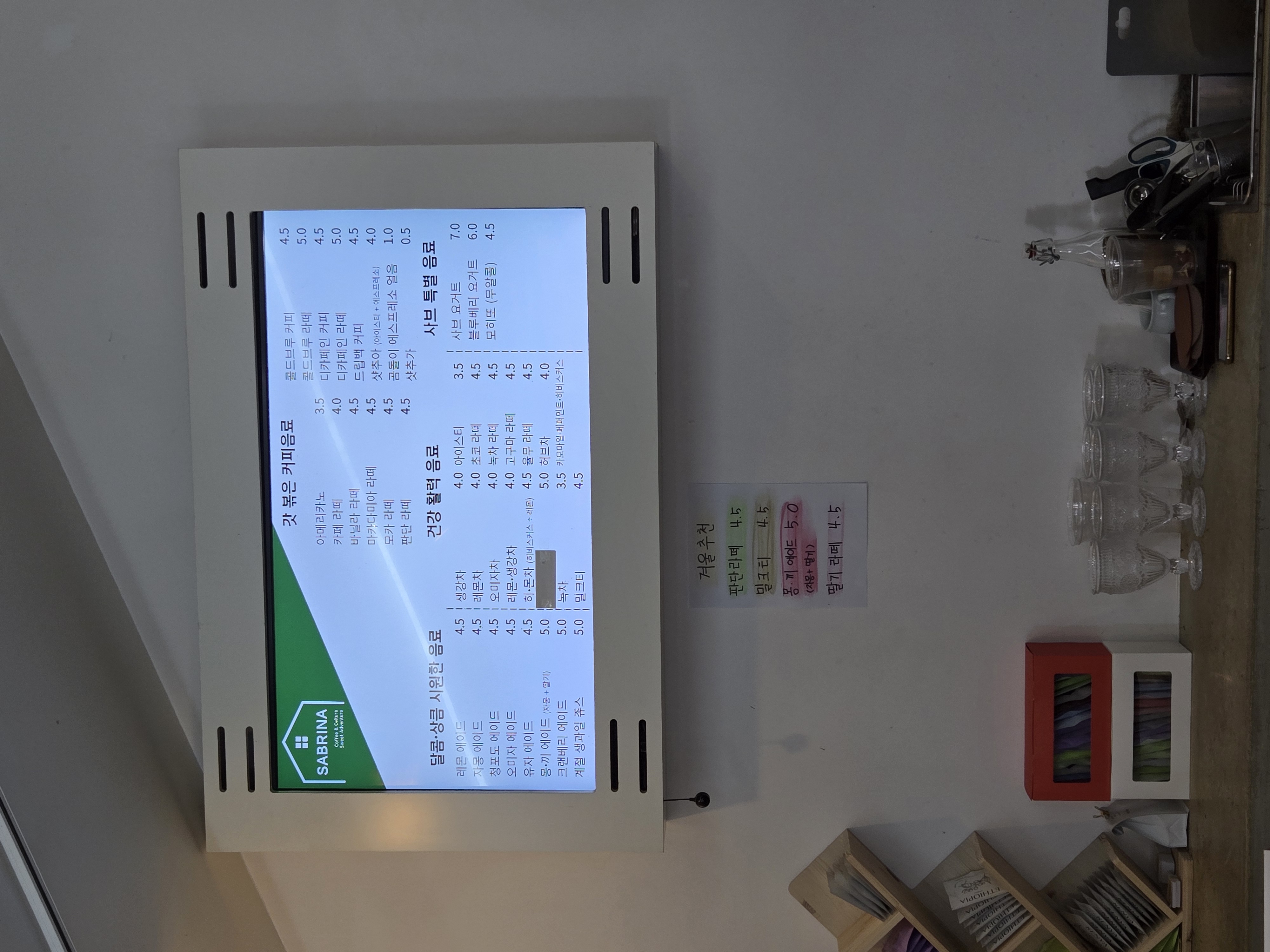 경주 건천 카페 사브리나 카페 메뉴 입니다