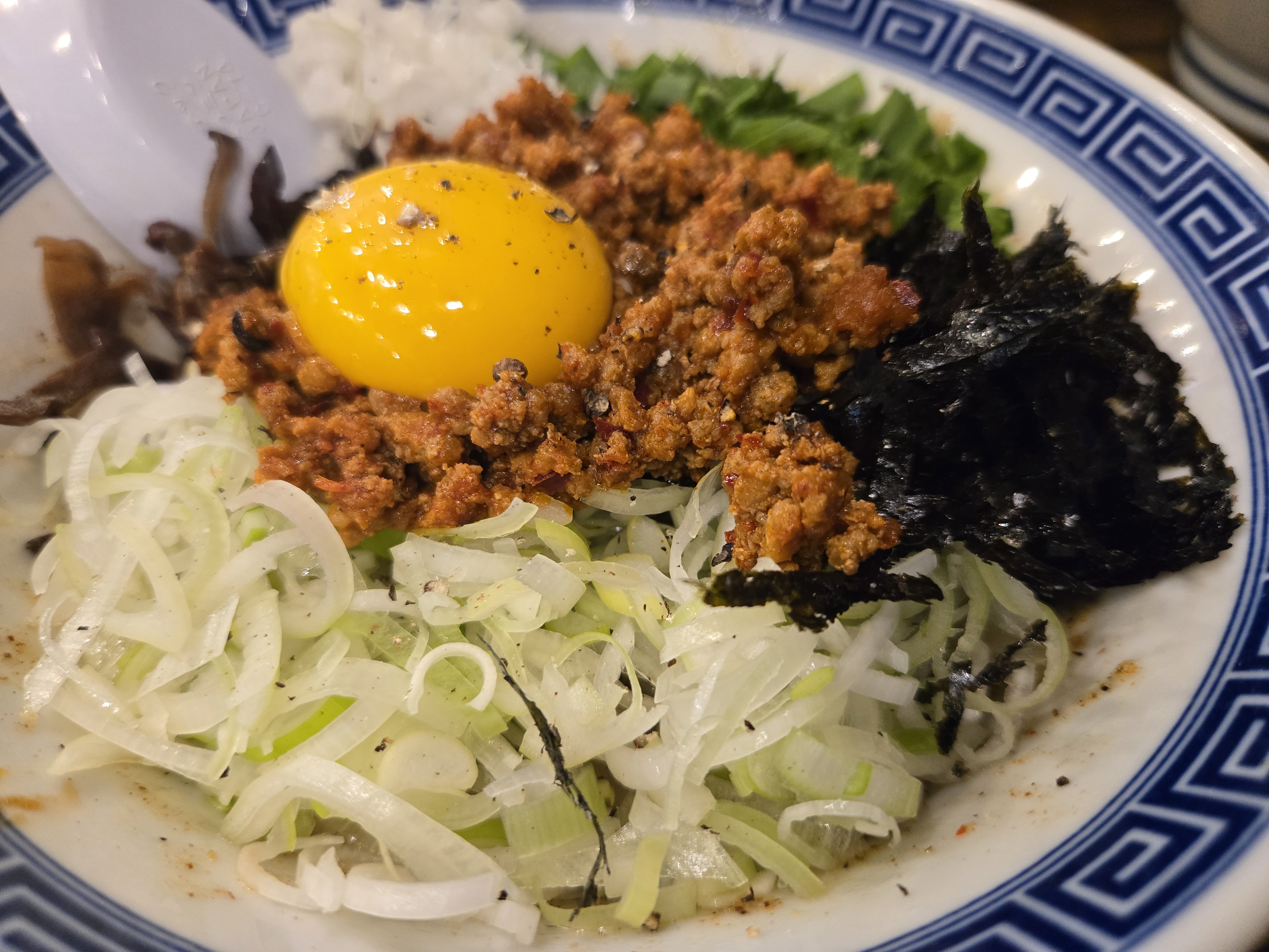 마제소바:비빔라멘으로 면과 다양한 토핑을 비벼 먹는 형태입니다