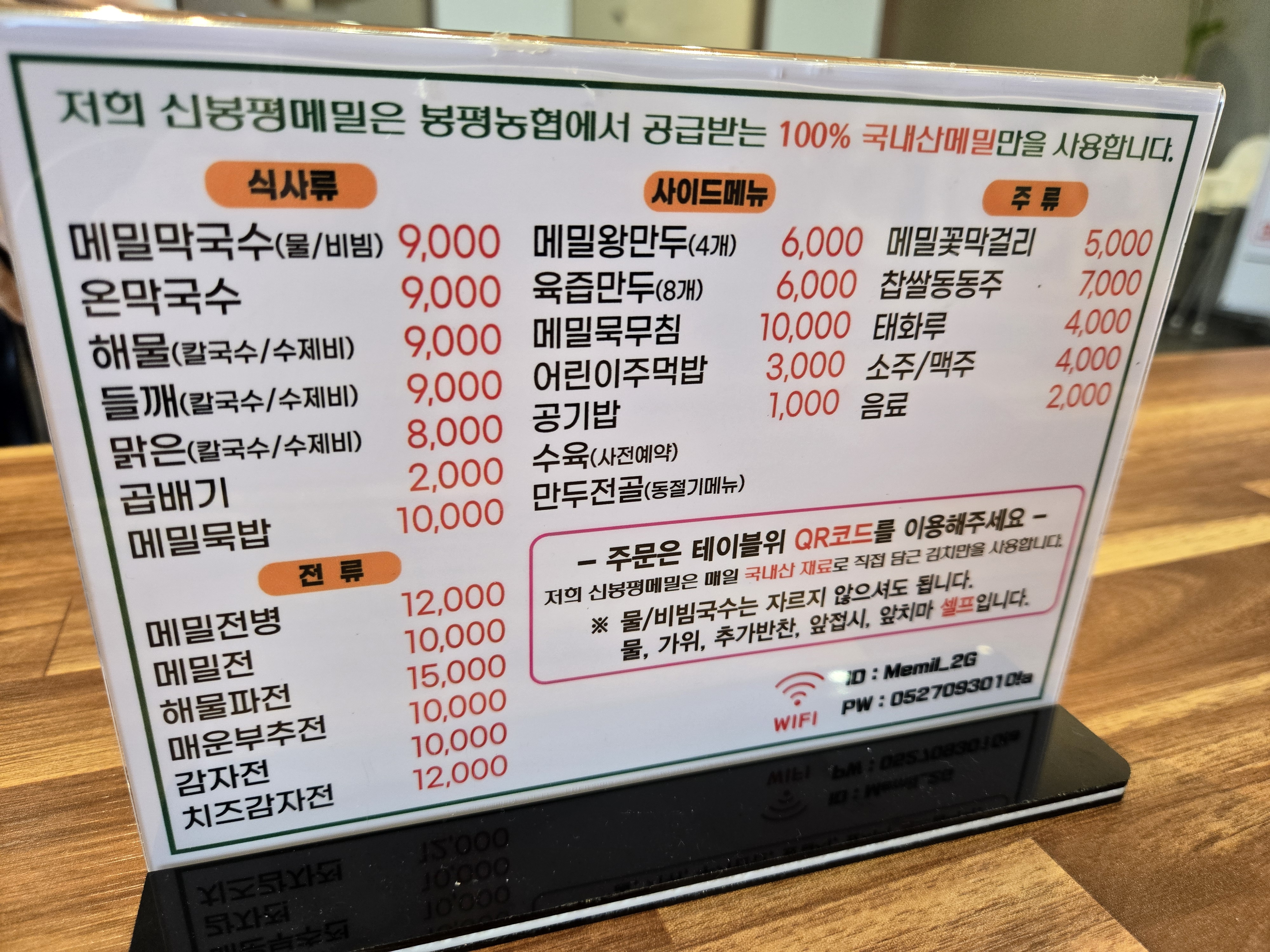 100% 국내산메밀 만을 사용한